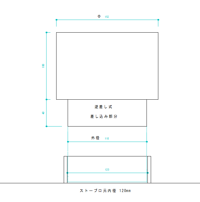 ストーブ口元Φ120→Φ152mmに変換するためのアダプターです。